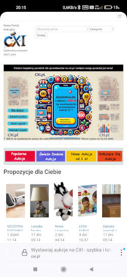 Na CXI.PL znajdziesz aukcje od 1 zł, popularne licytacje i wiele okazji. Dołącz już teraz i odkryj świat zakupów w najlepszych cenach!